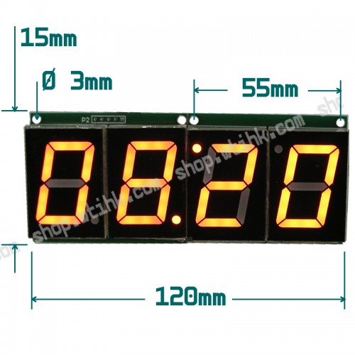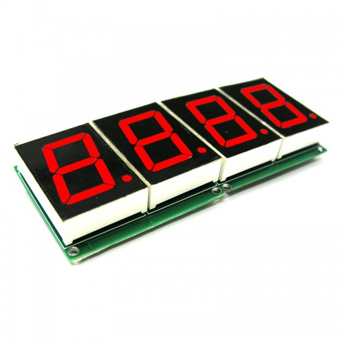 This is a big 4x 1.2-inch LED module can display standard 4 digit with decimal or in format of clock / temperature. LED control is done over I2C using the HT16K33 interface.